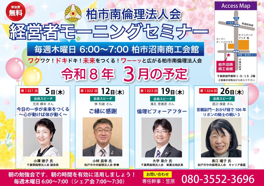 (毎週木曜日・AM6:00〜AM7:00/柏市沼南商工会館)