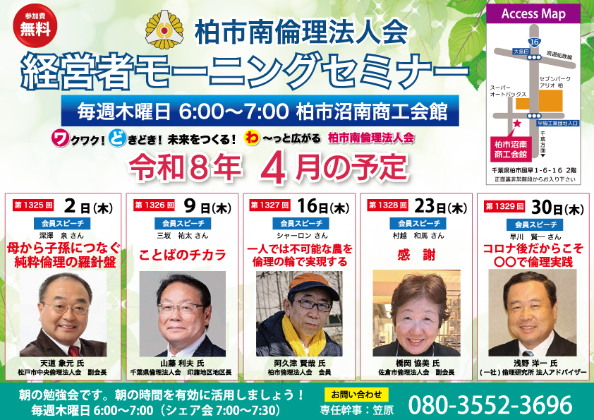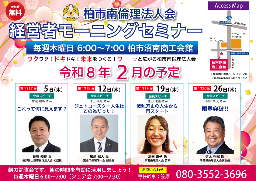 (毎週木曜日・AM6:00〜AM7:00/柏市沼南商工会館)