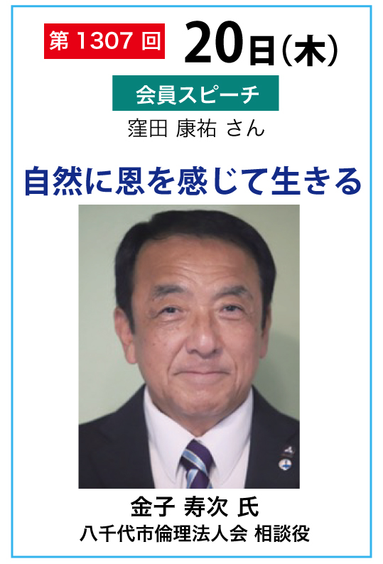 講師は八千代市倫理法人会 相談役 金子 寿次 氏をお迎えします。
